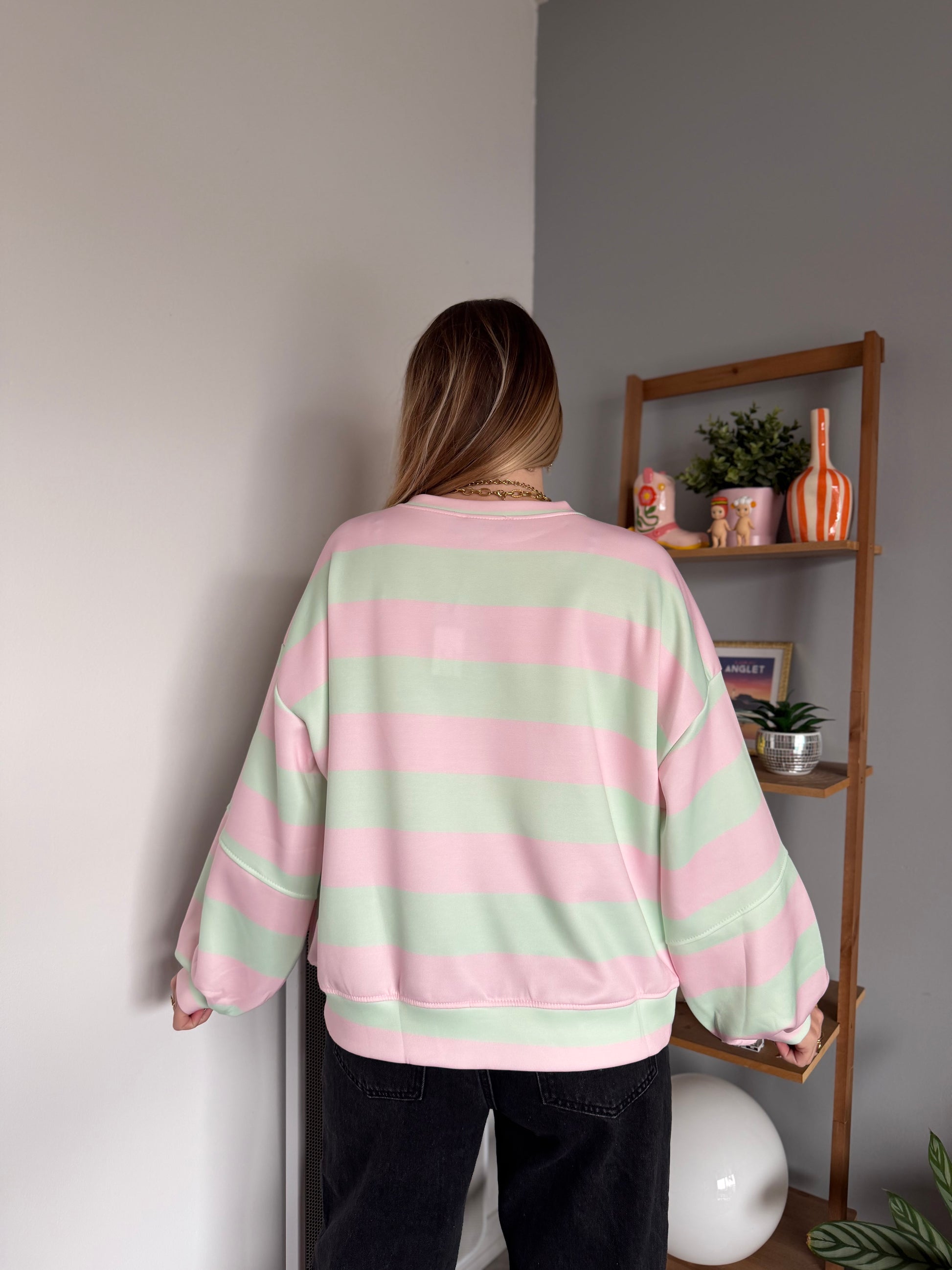 🤍 Sweat Marinière GABRIEL Vert + Rose