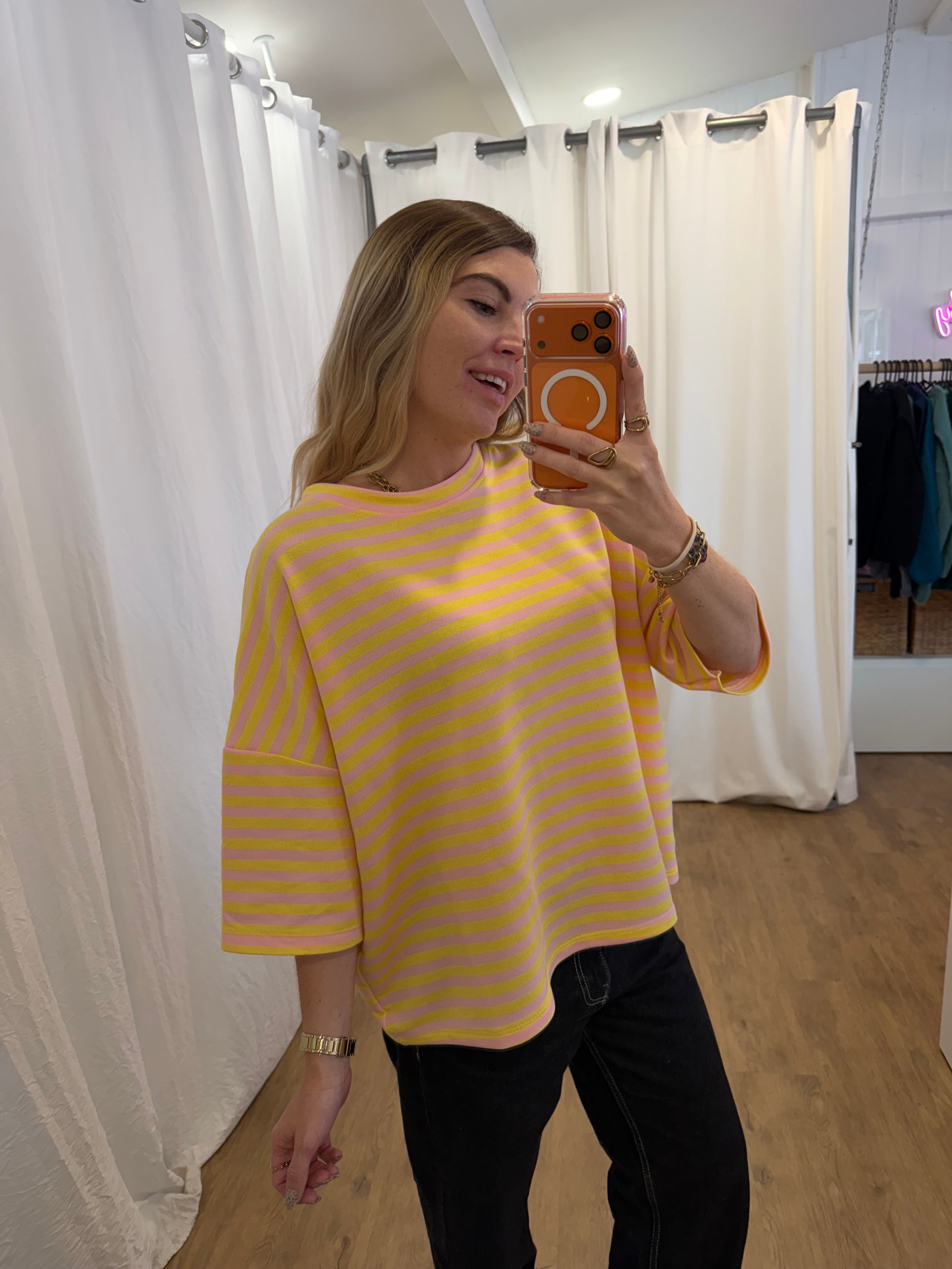 T-shirt LÉA marinière Rose + Jaune